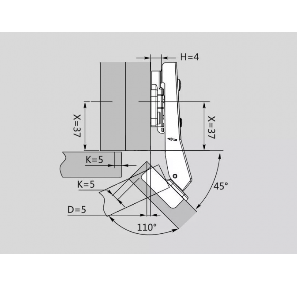 Завіса кутова 45*декоративна накладна DTC C85E6A6 S10HH