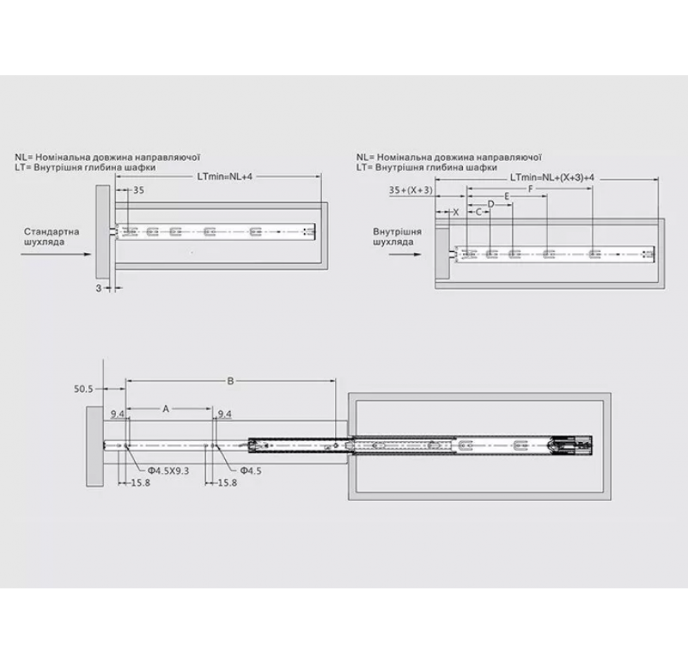 Вид направляючих: Кулькові (телескопічні)
