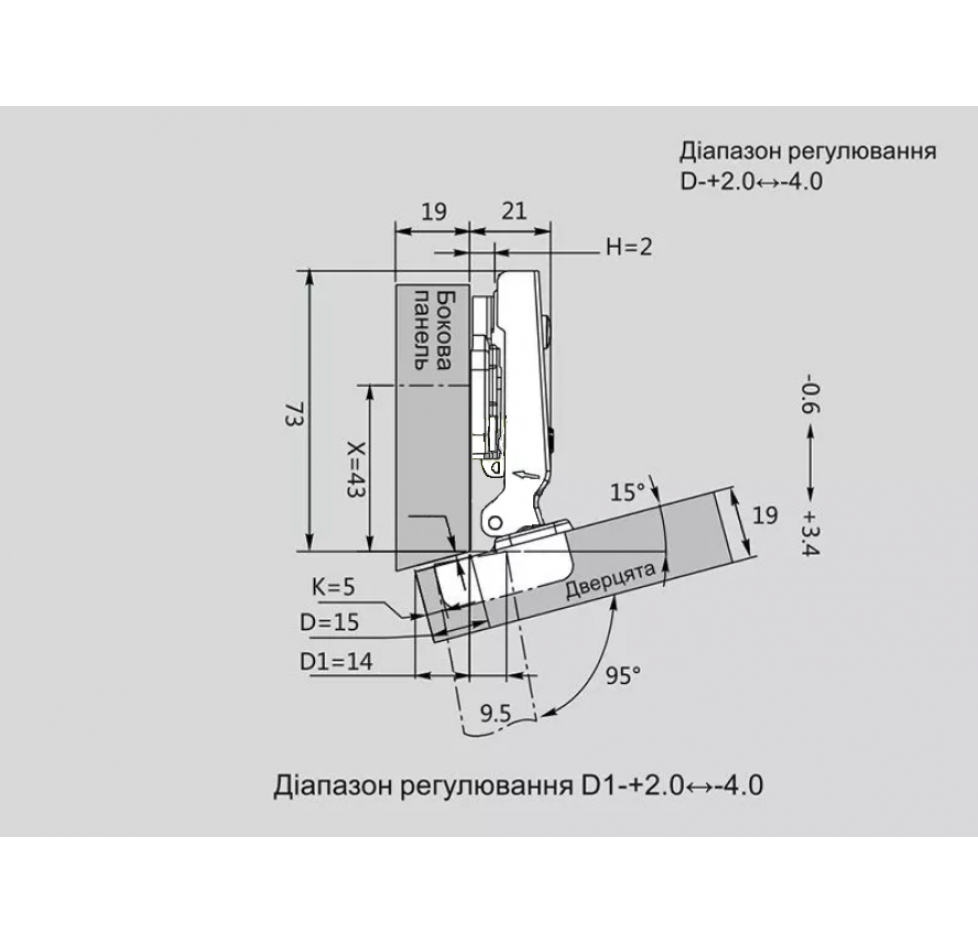 Зворотня планка H=4 посилена 4 отв до завіси DТС С89 H40EQ SNAP-ON
