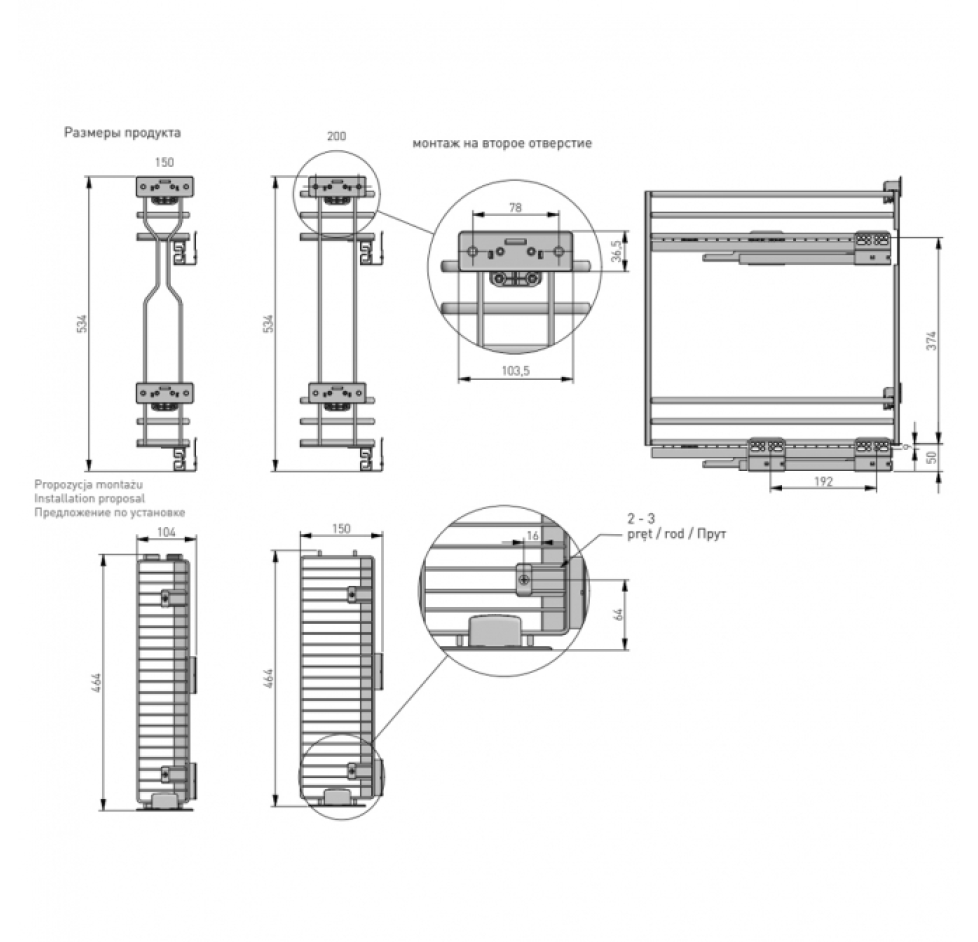 Ширина модуля, мм:    150