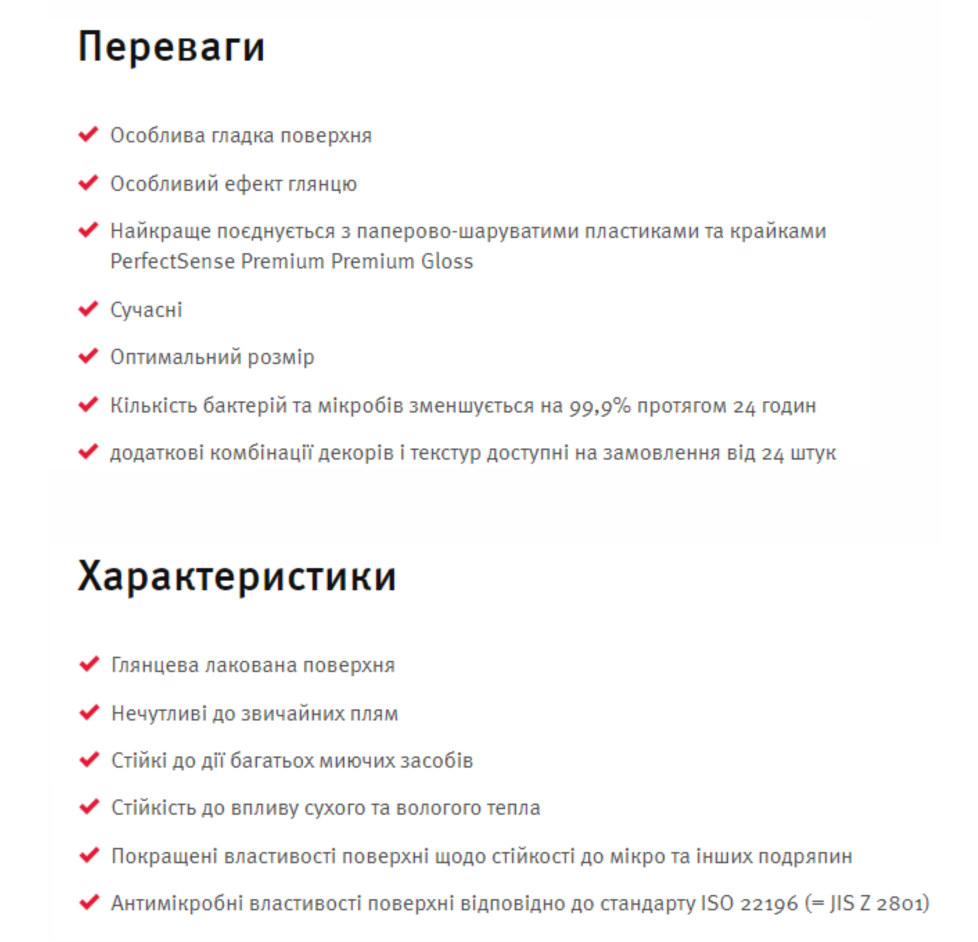 Лаковані плити МДФ (деревоволокнисті плити середньої щільності) PerfectSense Premium Gloss вражають своїм особливим блиском і відбивною здатністю. Завдяки інноваційному процесу виробництва забезпечується висока стійкість і тривалий строк експлуатації поверхні. Використання МДФ в якості плити-основи також покращило властивості високоякісної поверхні.