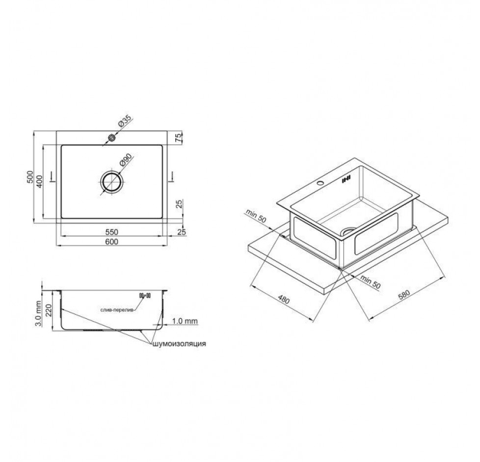 Діаметр слива, мм : 90