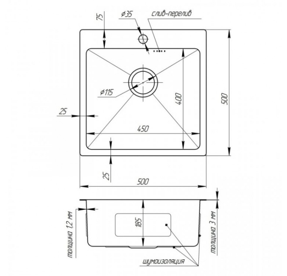 | Глибина мийки: | 500 мм |