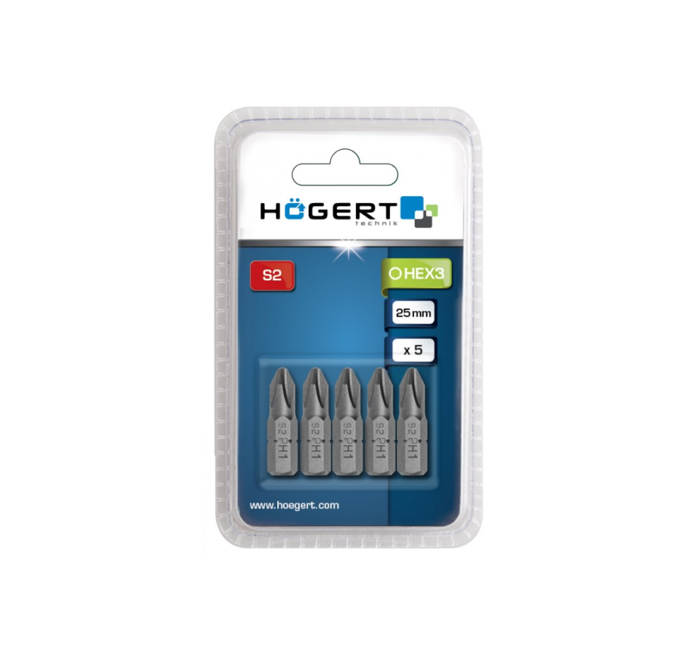 Набір біт PH1, 25мм сталь S2, 5шт HOGERT (HT1S301)