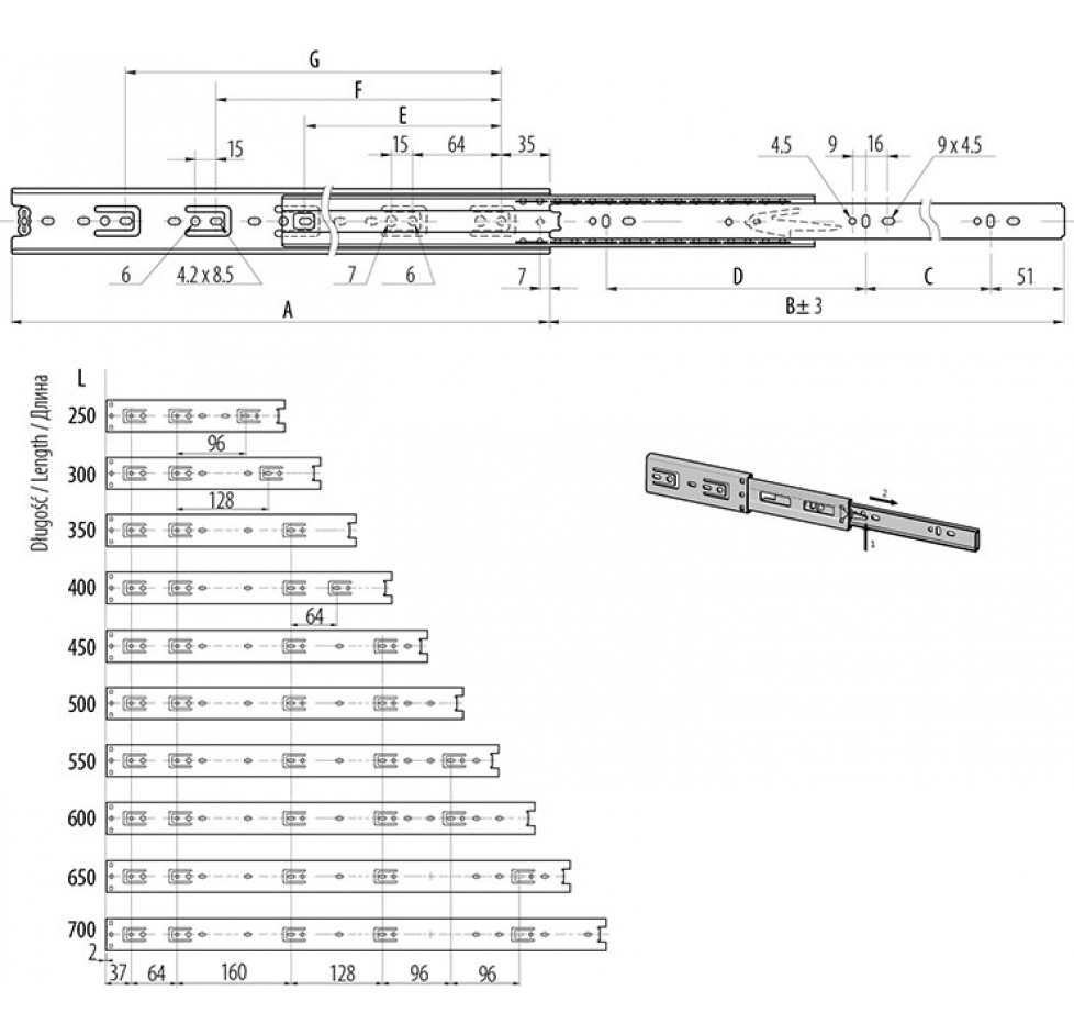ХАРАКТЕРИСТИКА: Колір: Цинк Одиниця вимірювання: Комплект Довжина, мм: 550 Висота, мм: 45 max навантаження, кг: дo 30 Матеріал: Сталь