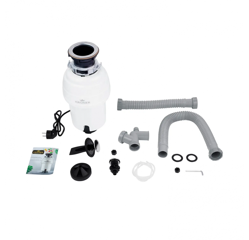 Подрібнювач відходів Kroner KRP Kaiman WHI-550W – високоякісний побутовий прилад, який встановлюється у злив кухонного миття та з'єднується з входом у каналізацію. Завдяки обладнанню всі харчові відходи ефективно переробляються в дрібні частинки і змиваються разом із водою, запобігаючи засміченню труб та виникненню неприємного запаху. Використання подрібнювача економить масу часу, який зазвичай витрачається на викидання відходів у відро для сміття. Виріб з нержавіючої сталі та високоякісного пластику оснащений автоматичною системою захисту від перевантажень.