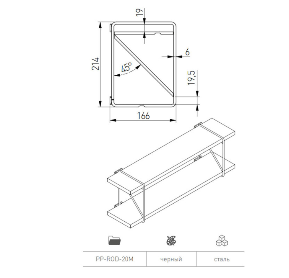 Тримач для полиці ROD, 21x17см, чорний мат (PP-ROD-20M)