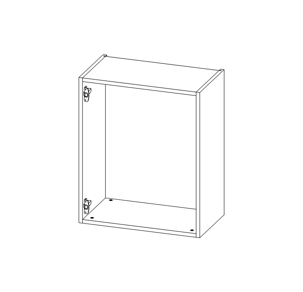 Верхній модуль без полиць під 1 розпашний фасад, відкривання вліво. Модуль укомплектований підвісами Hettich SAH 15, петлями Hettich Sensys та фурнітурою для збирання. Фасади, стільниця та цоколь до комплектації модулів не входять!