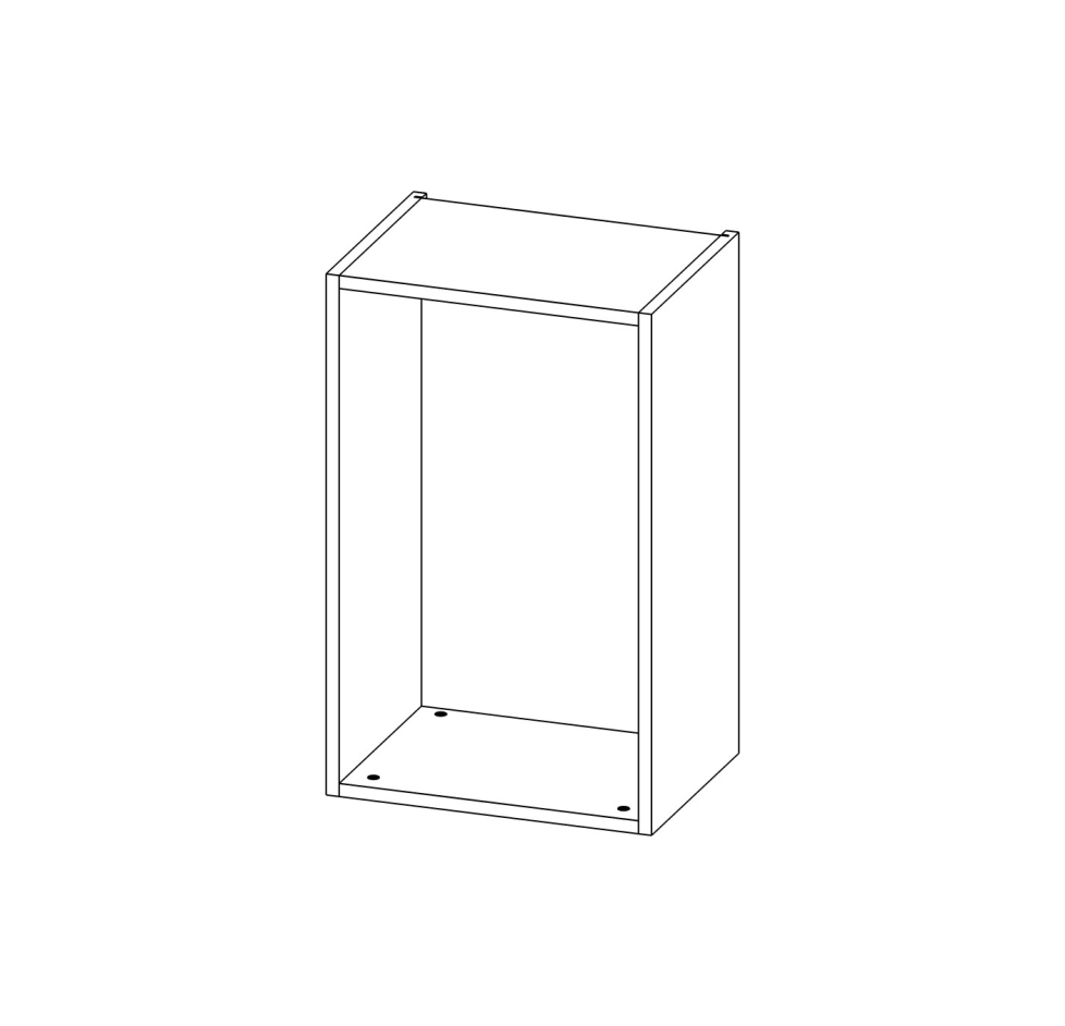 Відкритий верхній модуль без фасаду та полиць. Модуль укомплектований підвісами Hettich SAH 15 та фурнітурою для збирання. Фасади, стільниця та цоколь до комплектації модулів не входять!
