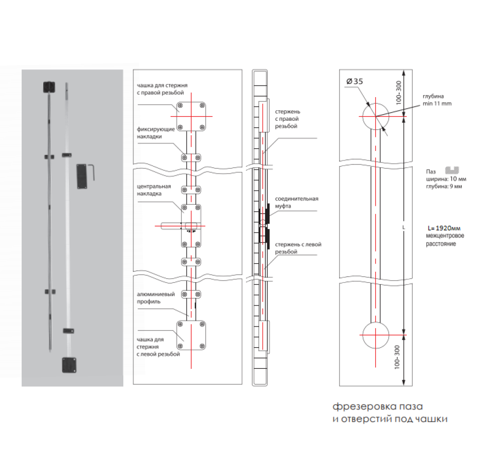 Вирівнювання здійснюється наступним чином: комірчиком (шестигранником, що входять в комплект) прокручуємо сполучну муфту вправо або вліво до повного вирівнювання двері.